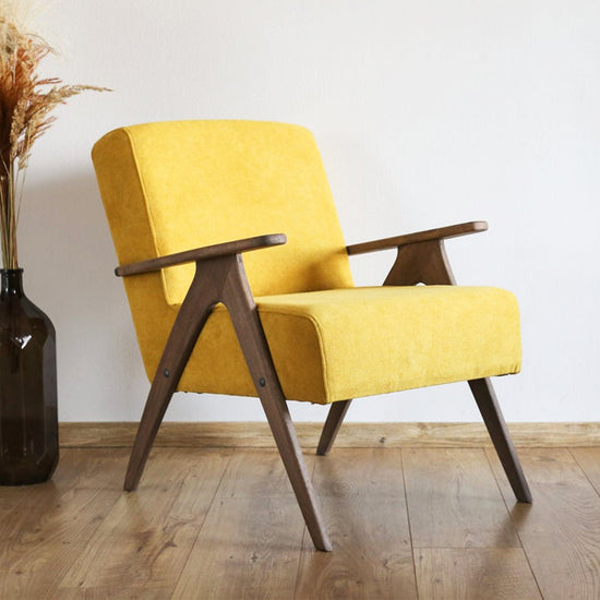 Mit Sorgfalt gefertigt: Unser moderner Mid-Century Lounge-Sessel wird von talentierten Handwerkern handgefertigt, wobei hochwertige Stoffe und massives, in Europa bezogenes, gefärbtes Holz verwendet werden. Dies garantiert überlegene Langlebigkeit, hervorragende Stabilität und unübertroffene Ästhetik.