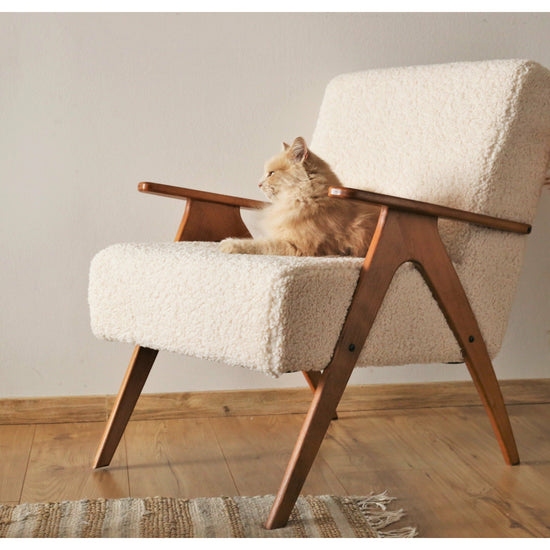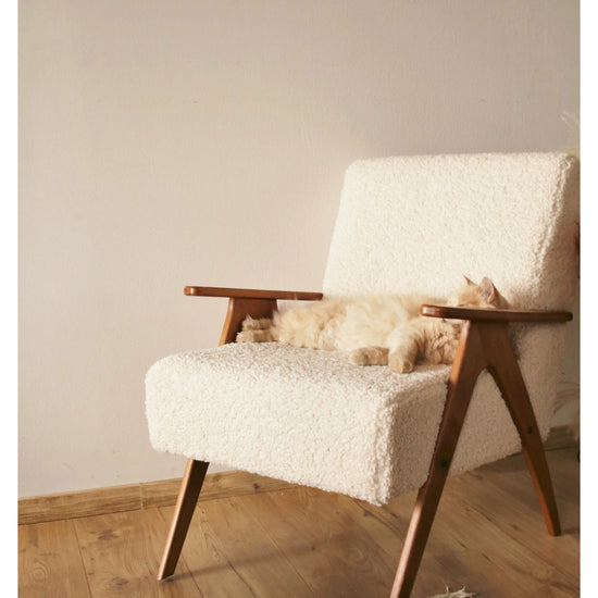 Mit Sorgfalt gefertigt: Unser moderner Mid-Century Lounge-Sessel wird von talentierten Handwerkern handgefertigt, wobei hochwertige Stoffe und massives, in Europa bezogenes, gefärbtes Holz verwendet werden. Dies garantiert überlegene Langlebigkeit, hervorragende Stabilität und unübertroffene Ästhetik.
