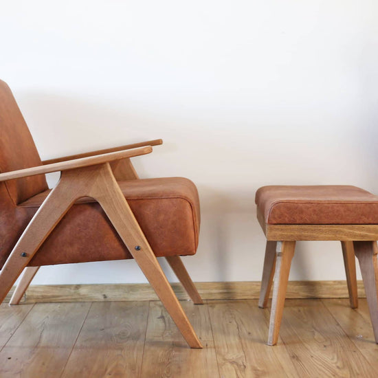 Wenn Sie vorhaben, Ihr Zuhause neu zu gestalten oder nach einem gemütlichen Sessel und Hocker-Set suchen, um sich zu entspannen und gleichzeitig das Ambiente zu bereichern, ist unser modernes Mid-Century Lounge-Set die ideale Wahl!