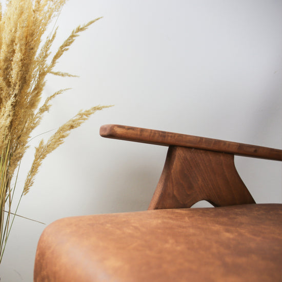 Les accoudoirs sont en bois de hêtre massif et teints de la couleur de votre choix. Le siège, ergonomiquement ajusté, est garni d'une mousse d'ameublement mi-ferme avec une densité de 35 kg/m3, garantissant ainsi une qualité et une durabilité optimales.