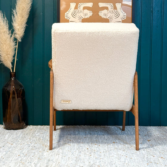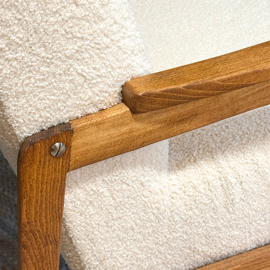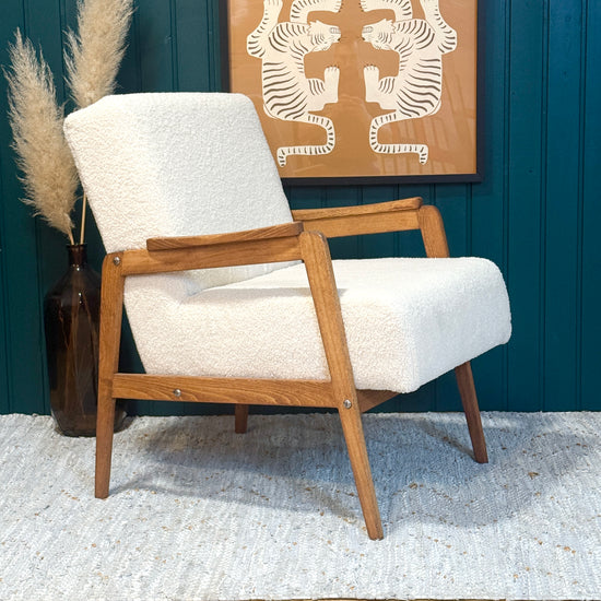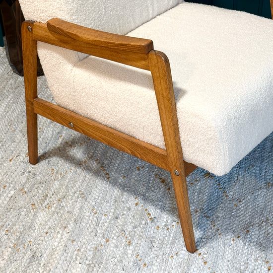 Restaurirana fotelja iz 1970-ih u krem Teddy tkanini